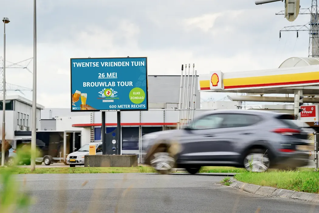 Dé allerdrukste invalsweg van Hengelo (OV) is de Haaksbergerstraat (oude N18) ter hoogte van de kruising met industrieterrein Twentekanaal Zuid. Alle verkeer dat vanaf de A35 richting Hengelo rijdt, passeert deze kruising. Op deze kruising staat ons in december 2023 vernieuwde LED reclamescherm van bijna 10 m2 met maar liefst een pixelpitch van 8mm! Zeer goed leesbaar voor zowel rijdend als stilstaand verkeer. Deze display is 24 uur per dag in werking.